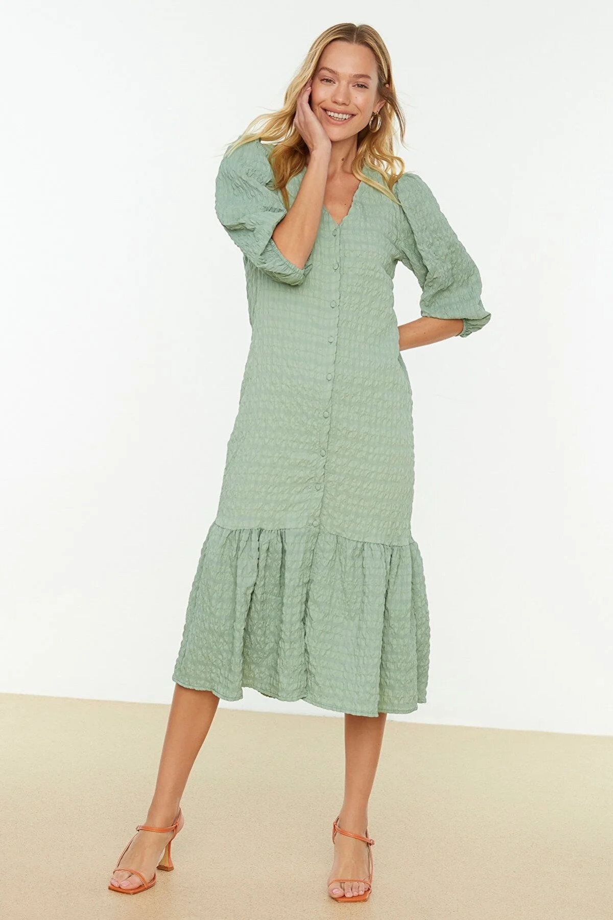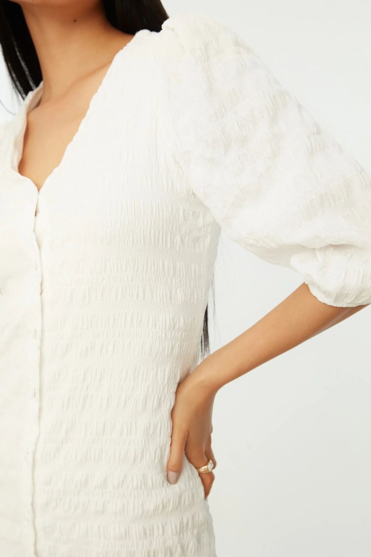 Fabric Textured Buttoned Dress
