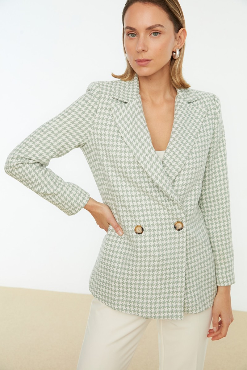 Mint Button Detailed Blazer Jacket